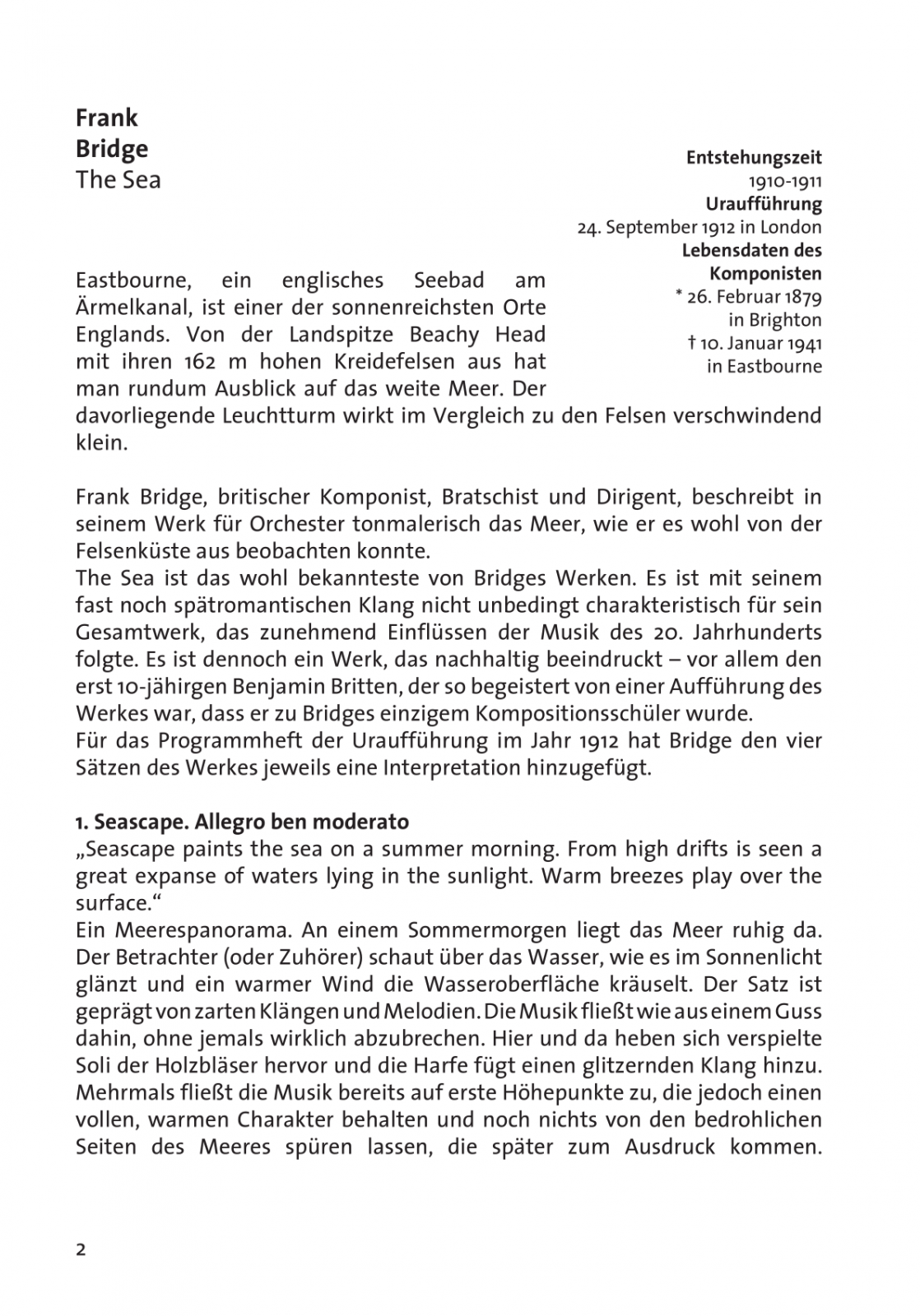 - F. Bridge: The Sea, H. 100