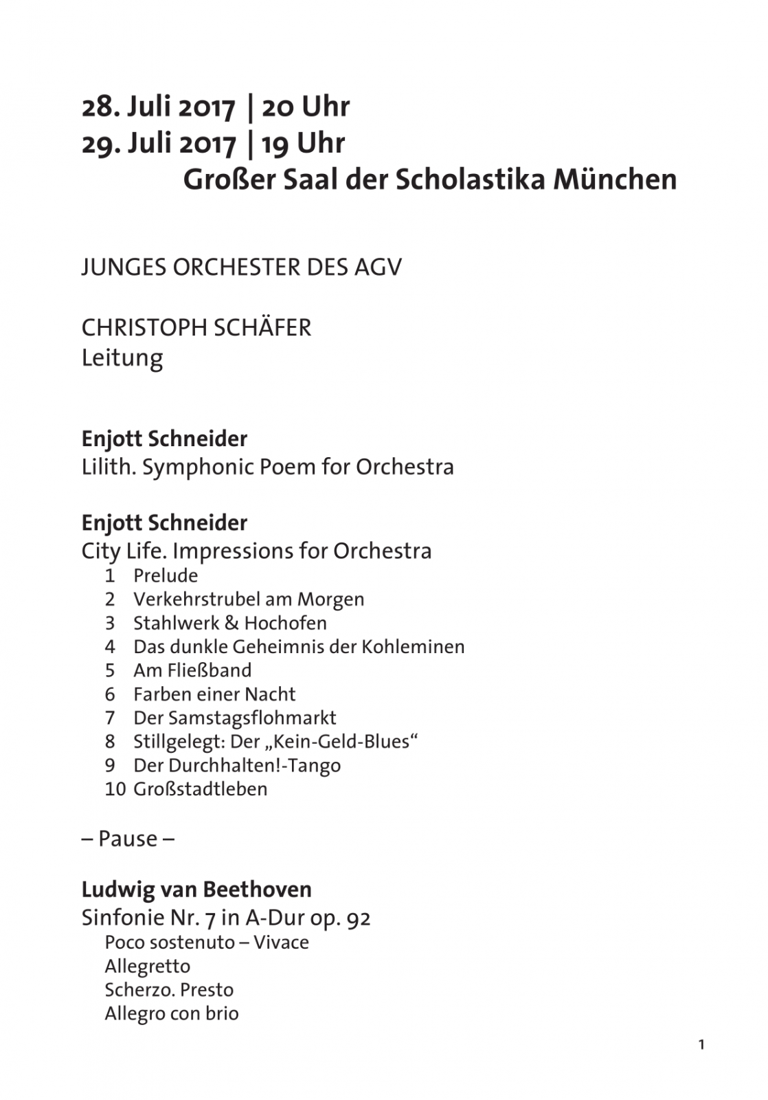 Freitag, 28. Juli 2017, 20 Uhr, im Großen Saal der Scholastika