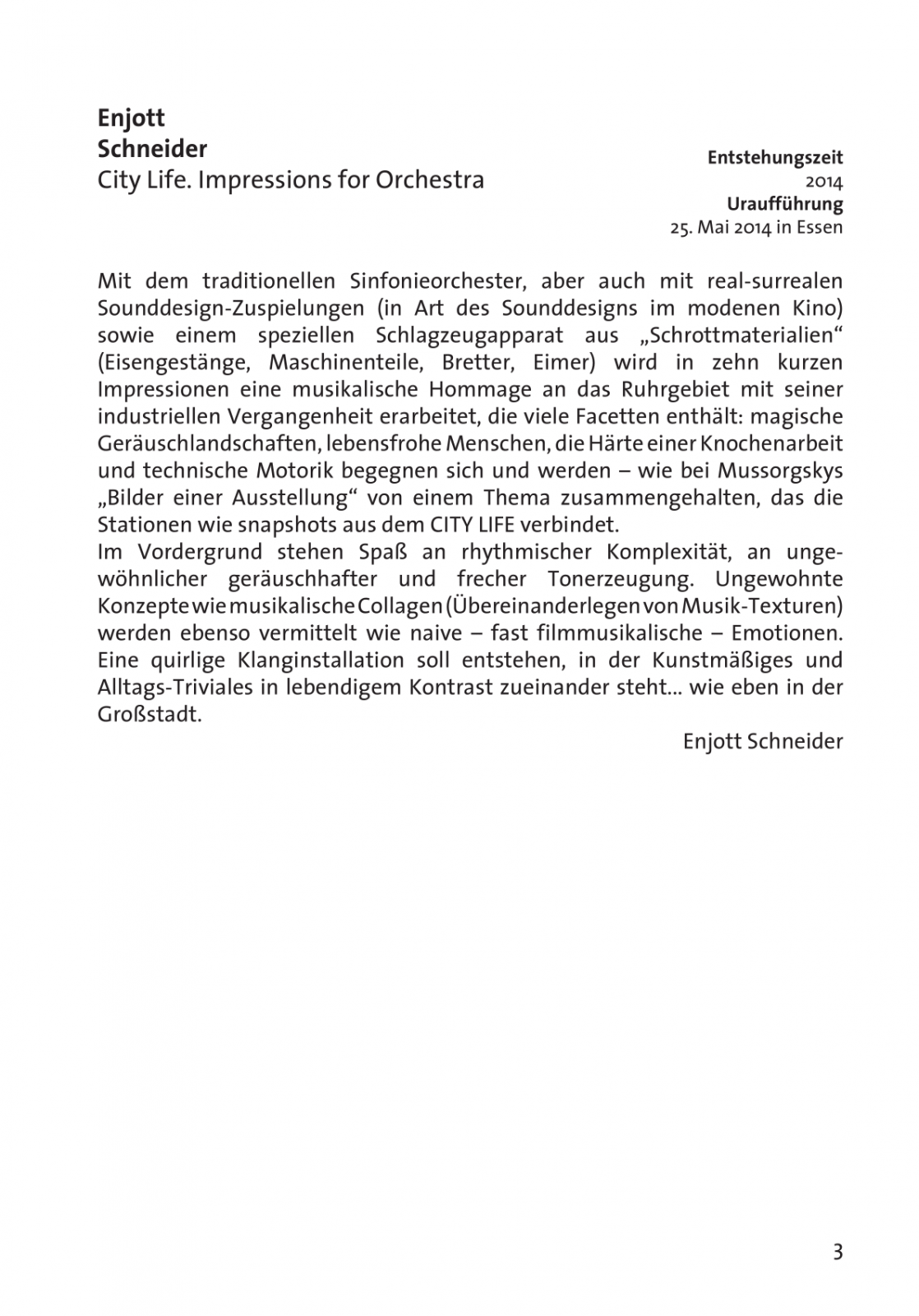 - E. Schneider: City Life. Impressions for Orchestra