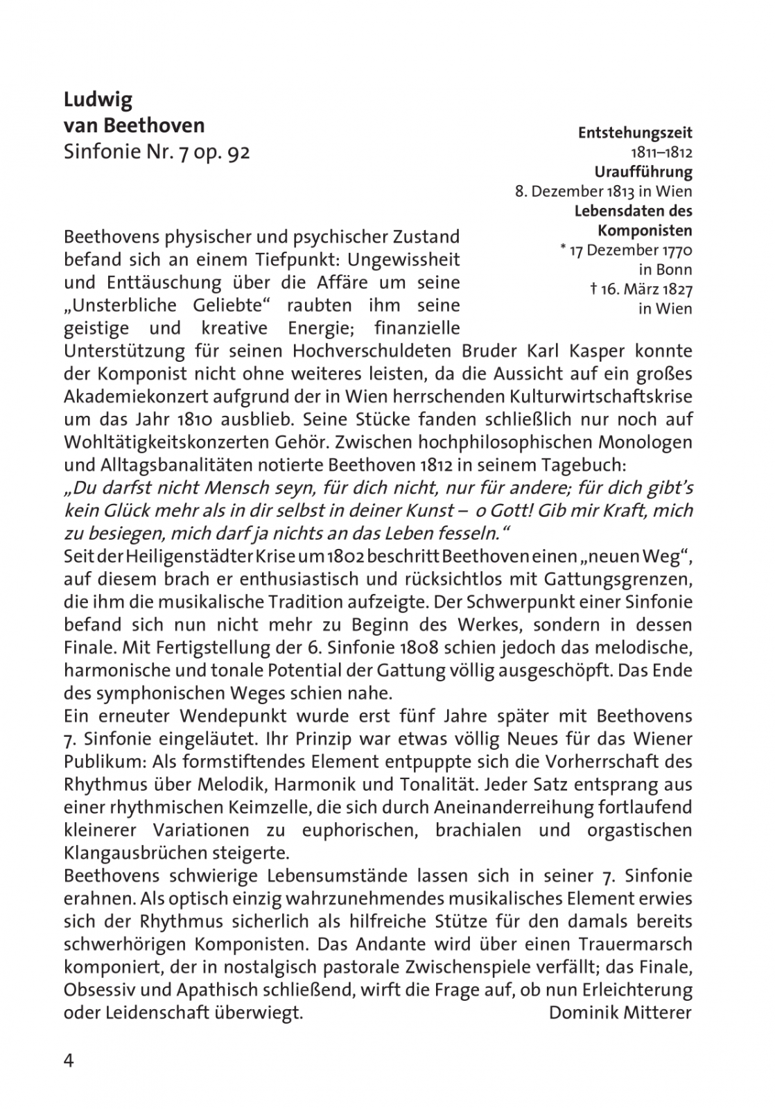 - L. v. Beethoven: Sinfonie Nr. 7 in A-Dur op. 92