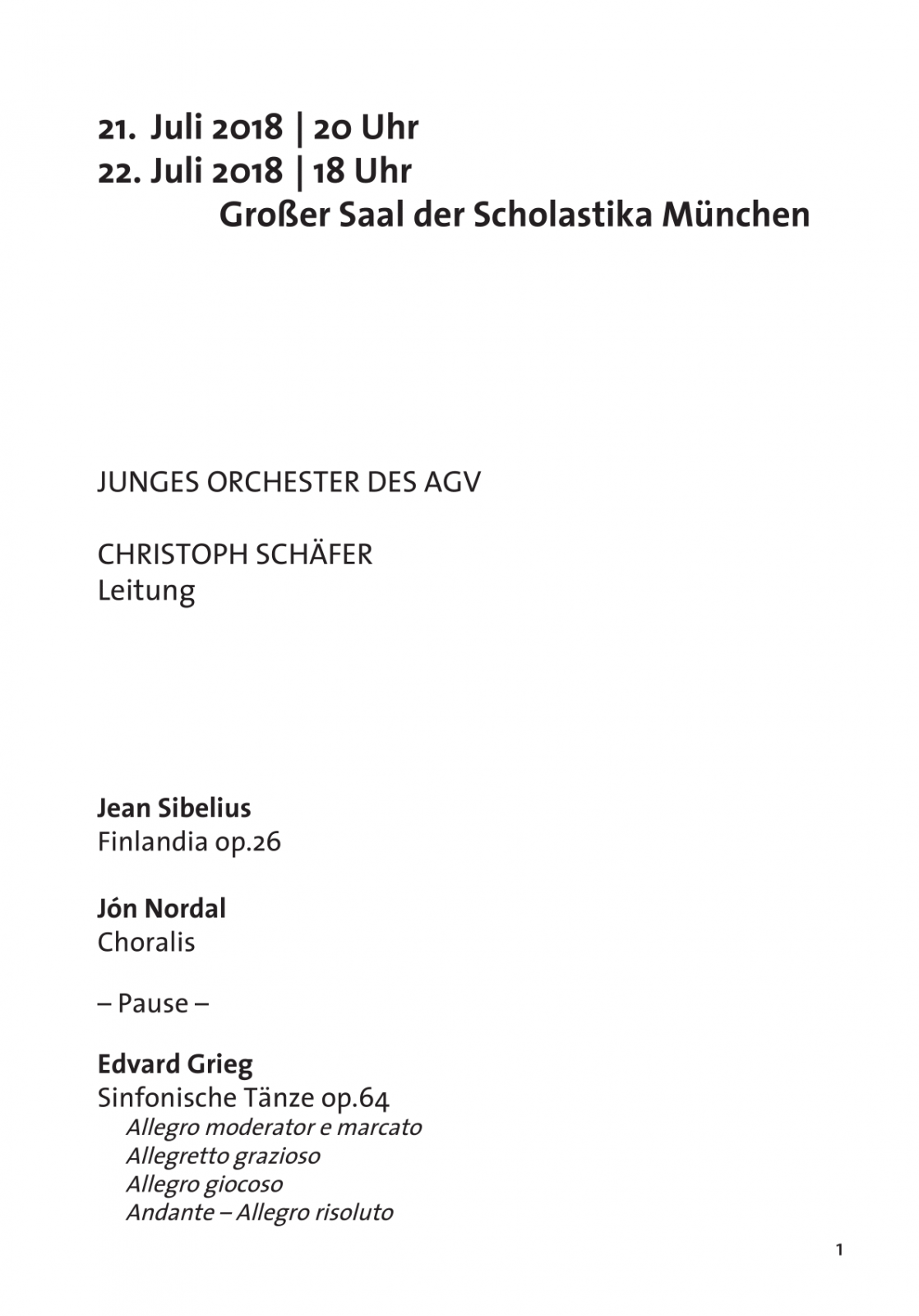 Sonntag, 22. Juli 2018, 18 Uhr, im Großen Saal der Scholastika