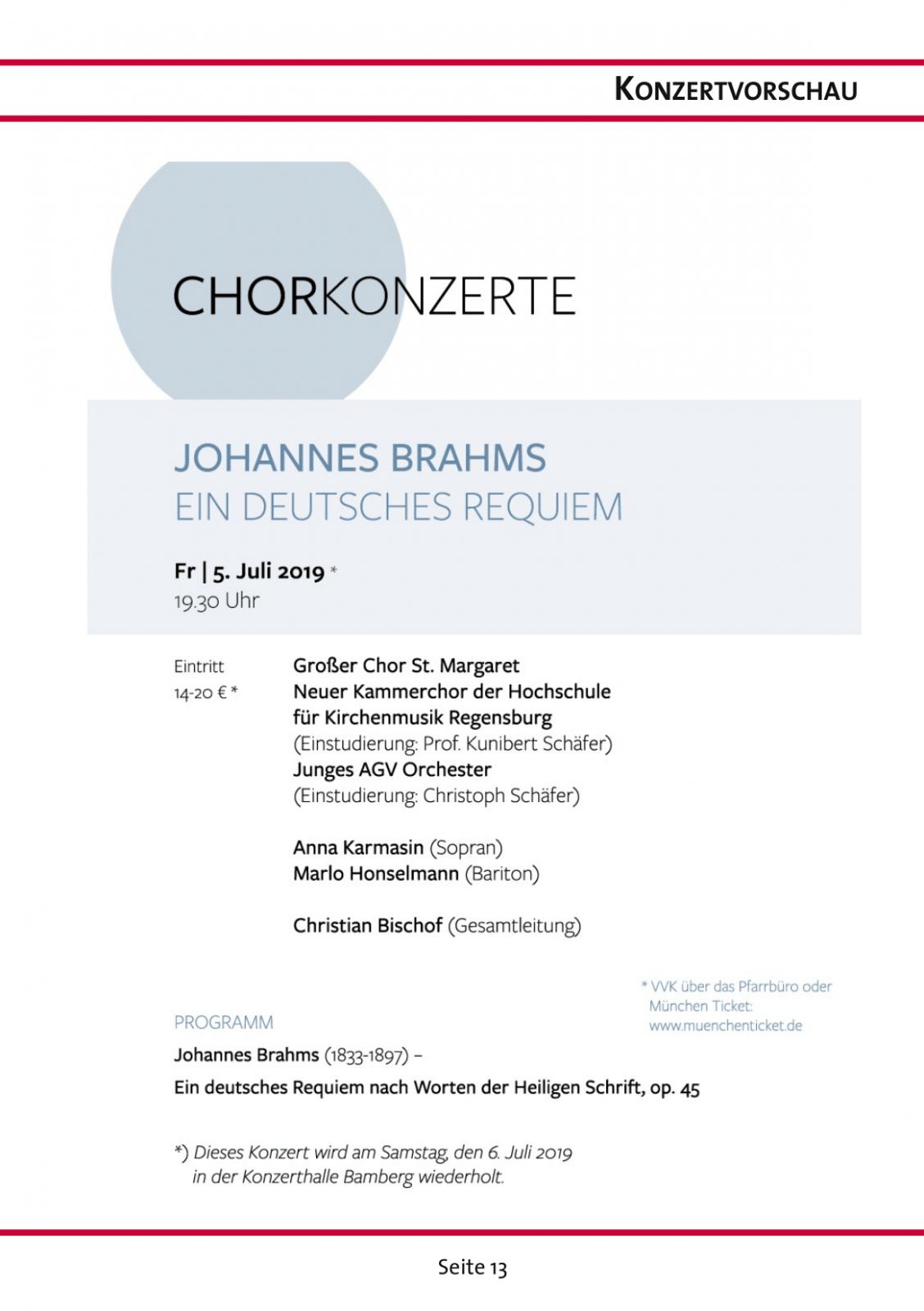 - Kirchenchor St. Margaret München, Leitung: Christian Bischof