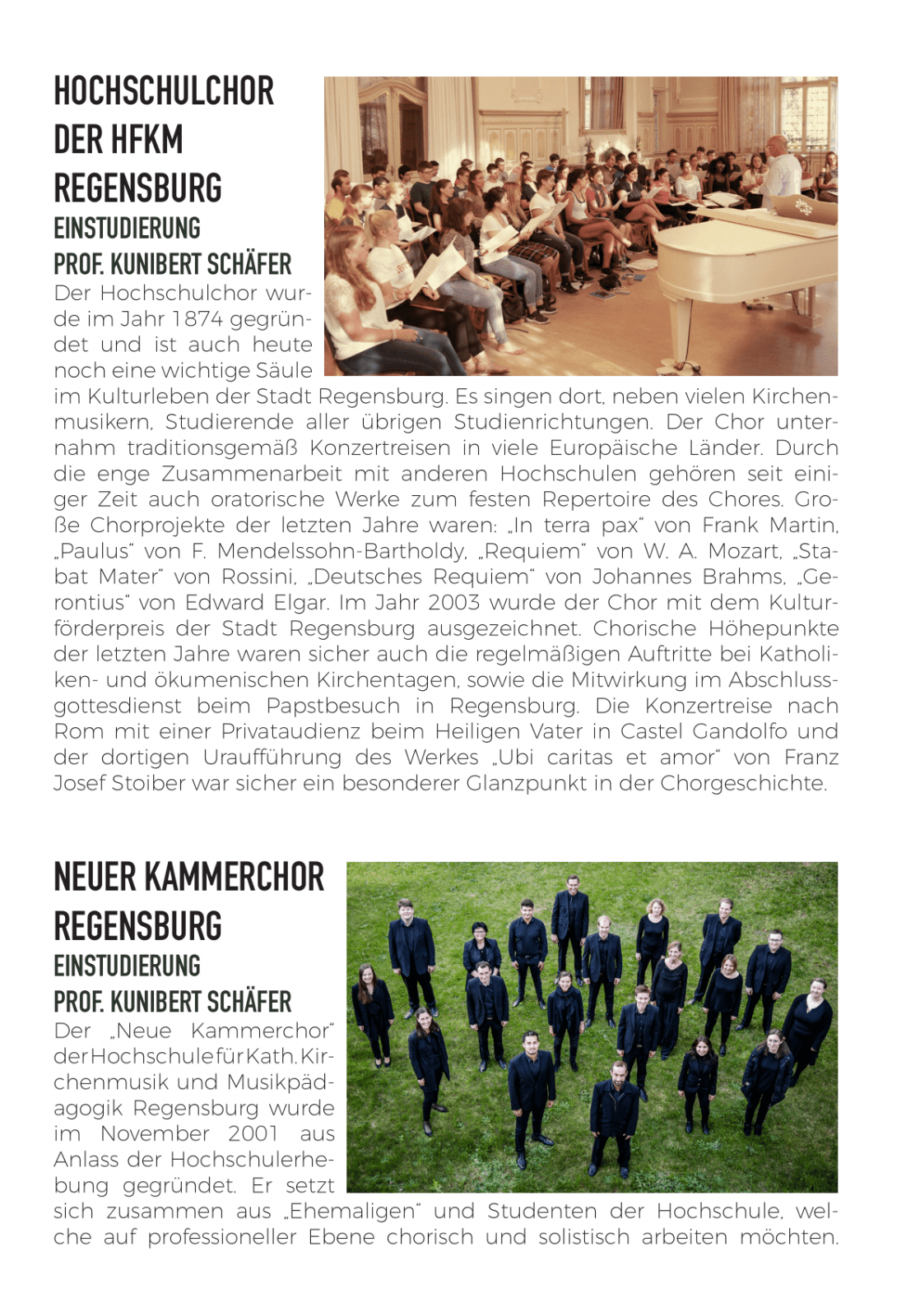 - Hochschulchor und Neuer Kammerchor der Hochschule für Kirchenmusik Regensburg, Leitung: Prof. Kunibert Schäfer